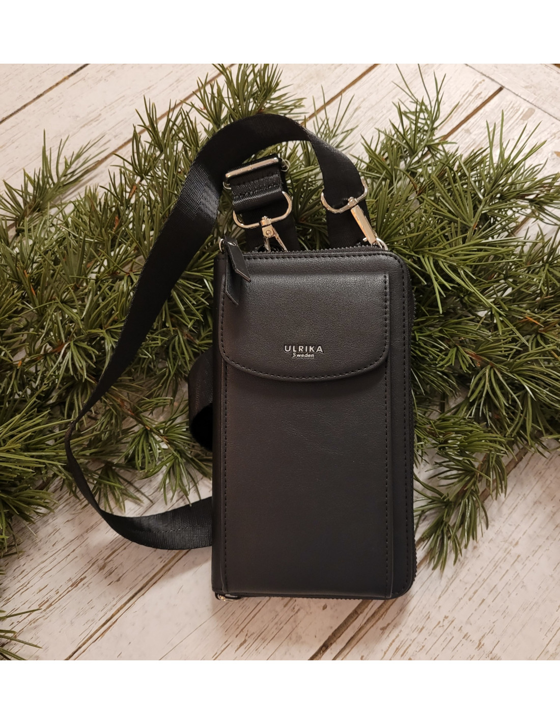 Tuff mobilväska med flera fack. Utanpå finns ett mobilfack. I sidan finns en dragkedja där du har tre fack varav en med dragkedja. Dessutom finns det fyra kortfack. Du kan använda den på flera sätt, se bild