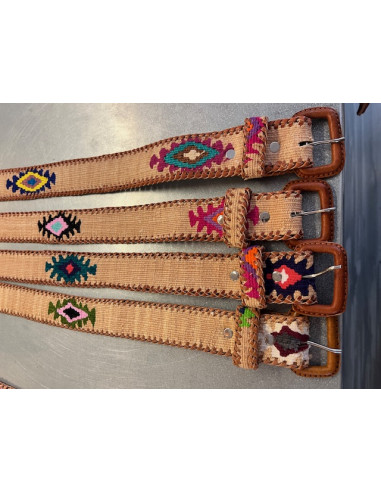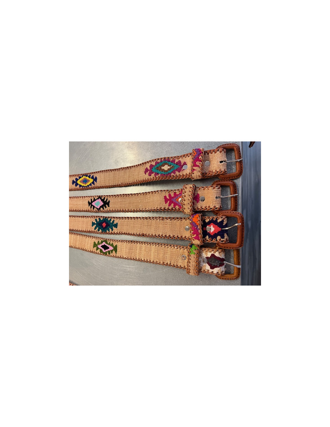 Handgjort skinnbälte med broderier. Alla är unika så mönster och färger kan variera. Måttet är räknat till näst yttersta hålet så många atr en storlek längre än normalt, kan upplevas kort annars.