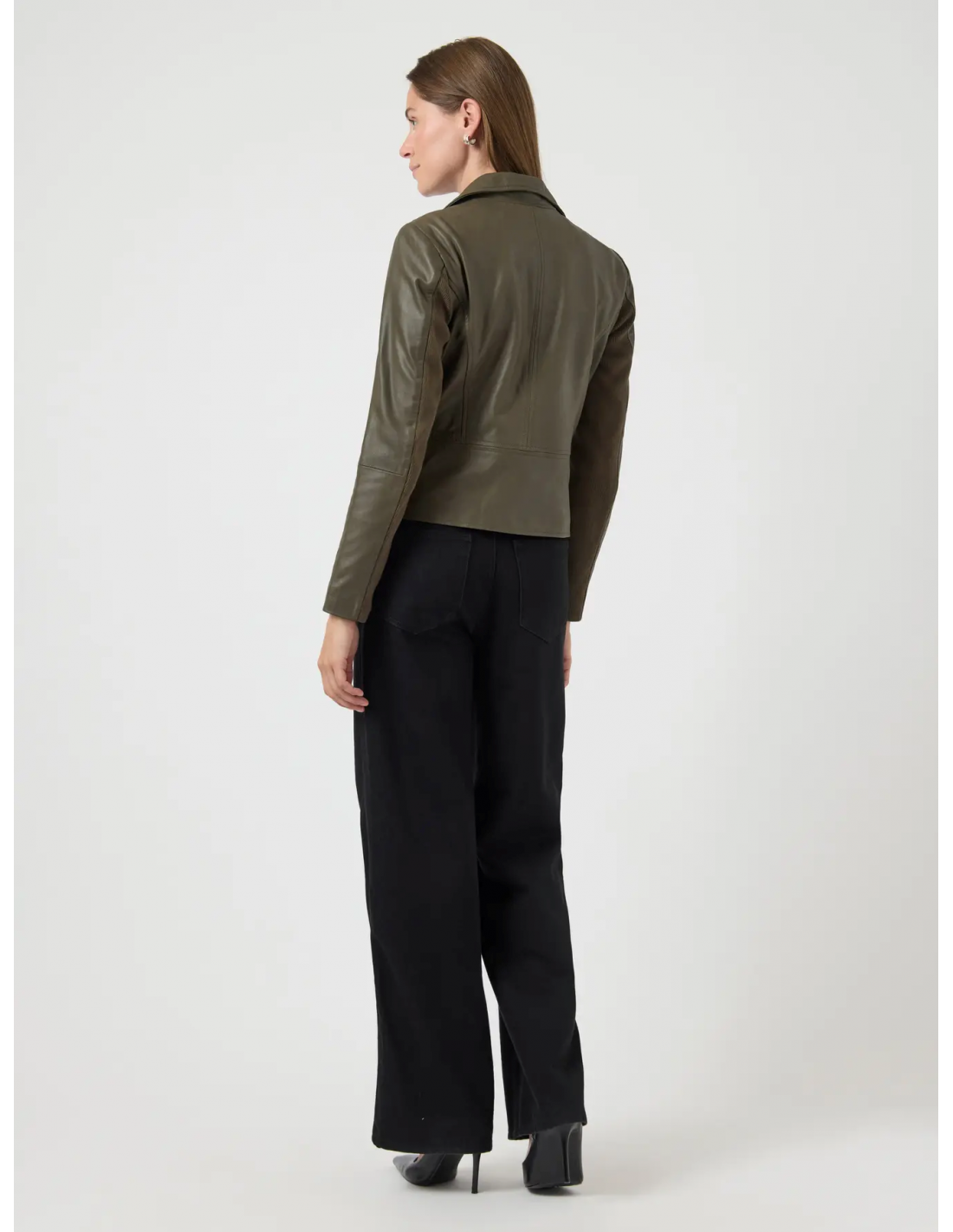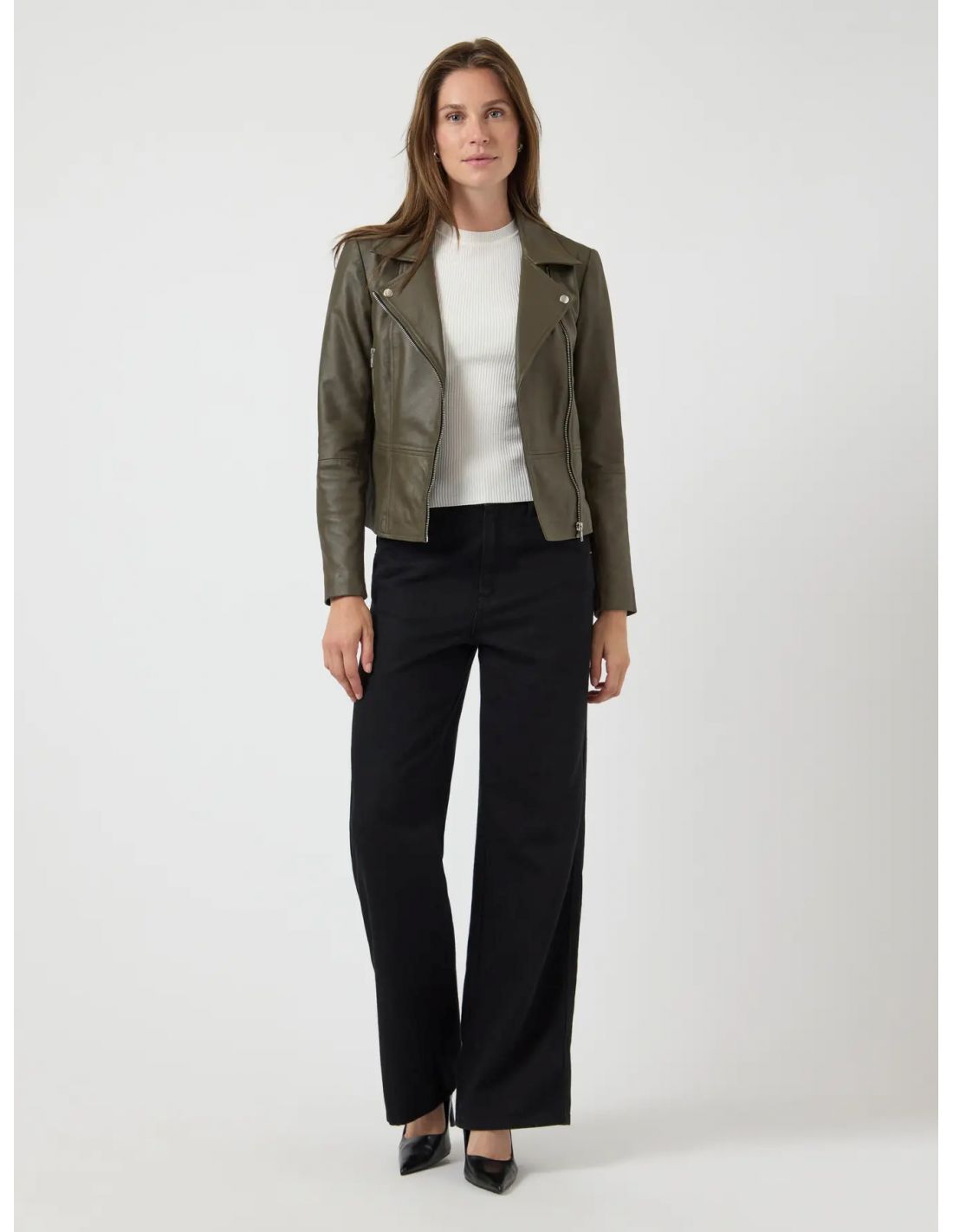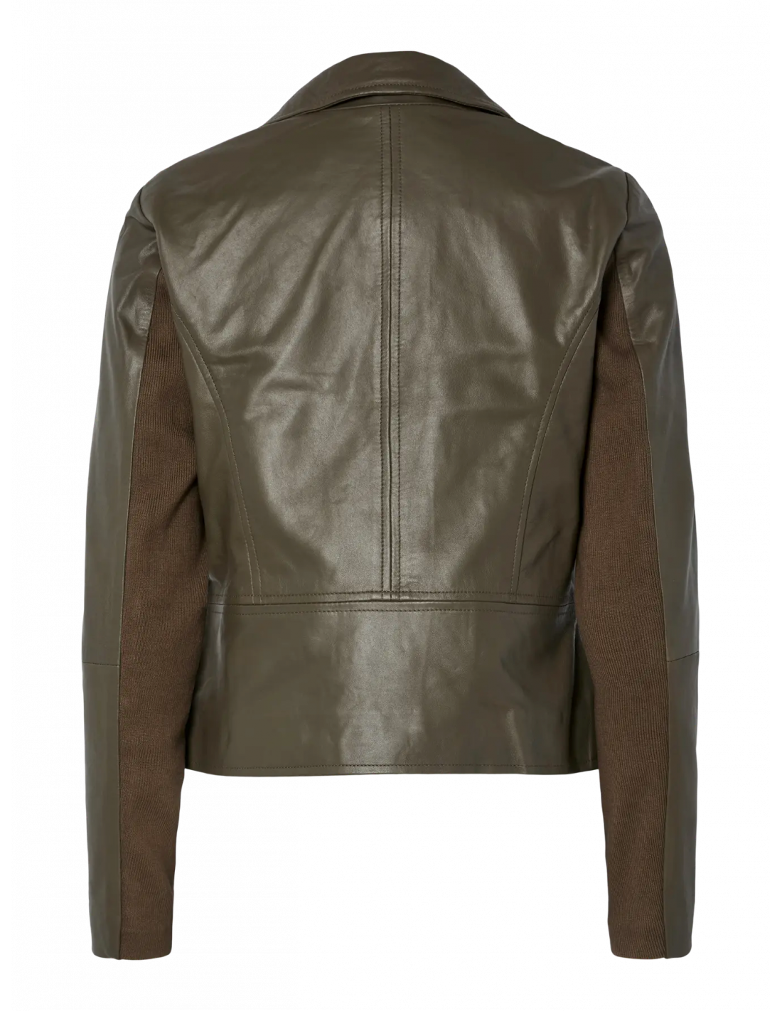 Klassisk skinnjacka i äkta läder från get. Med krage och stängs med dragkedja. Resår på baksida ärm.