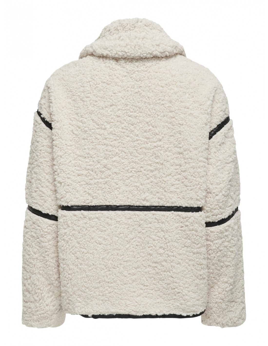 Fodrad teddyjacka med dragkedja, klassisk krage och skinndetaljer för en snyggare look.