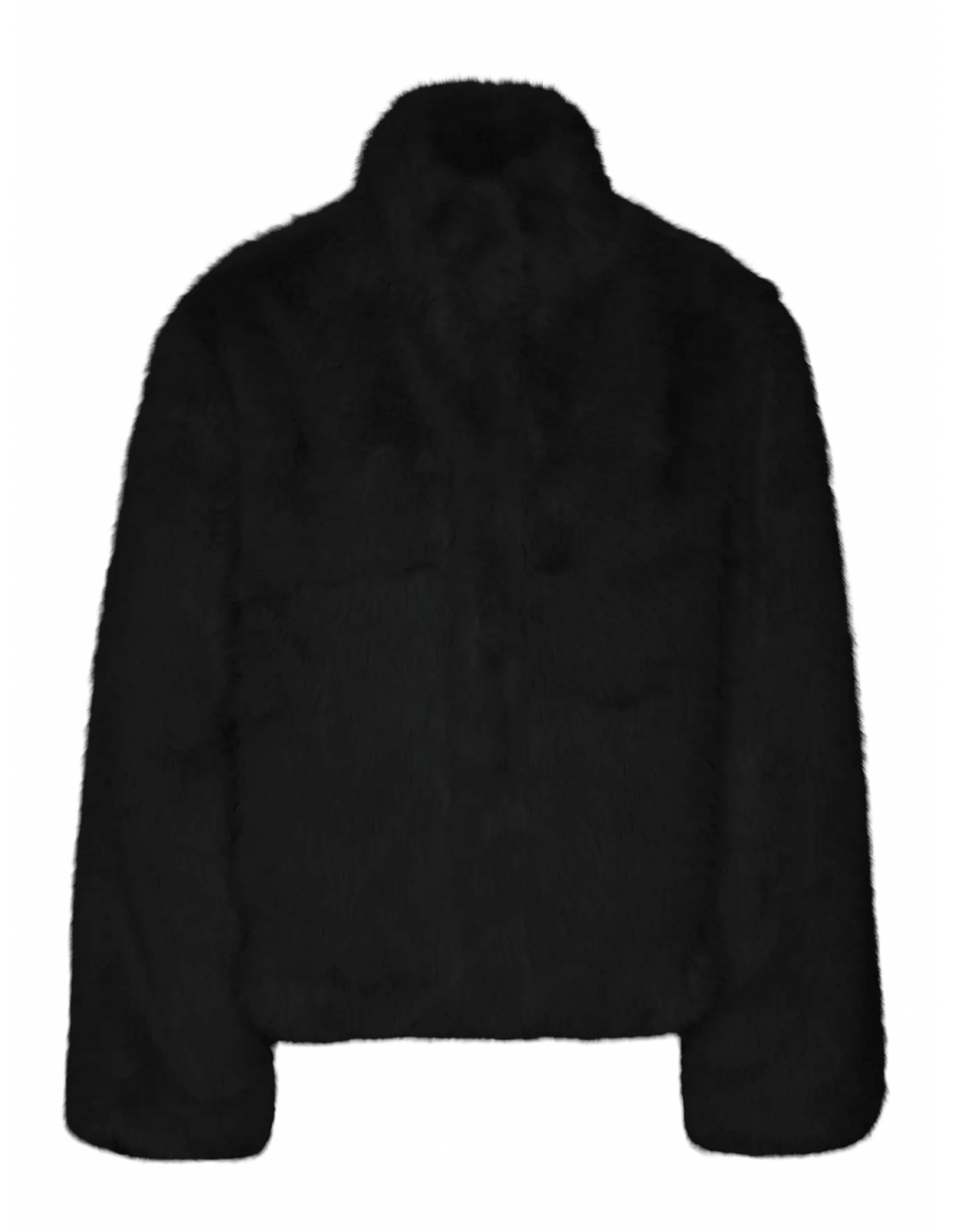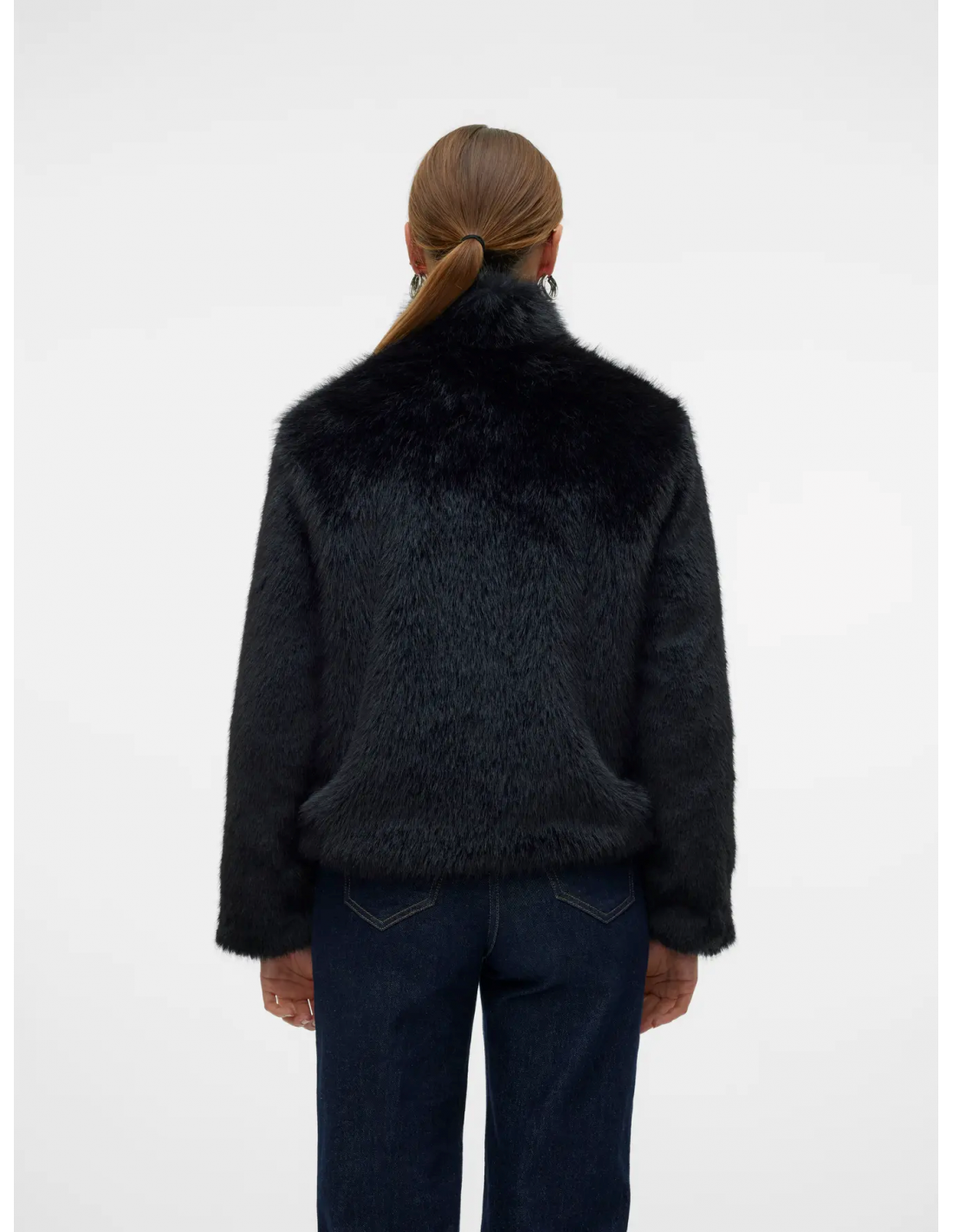 Jacka i fuskpäls från Vero Moda. Jackan är fodrad, har fickor i sidorna och stängs med tryckknappar.