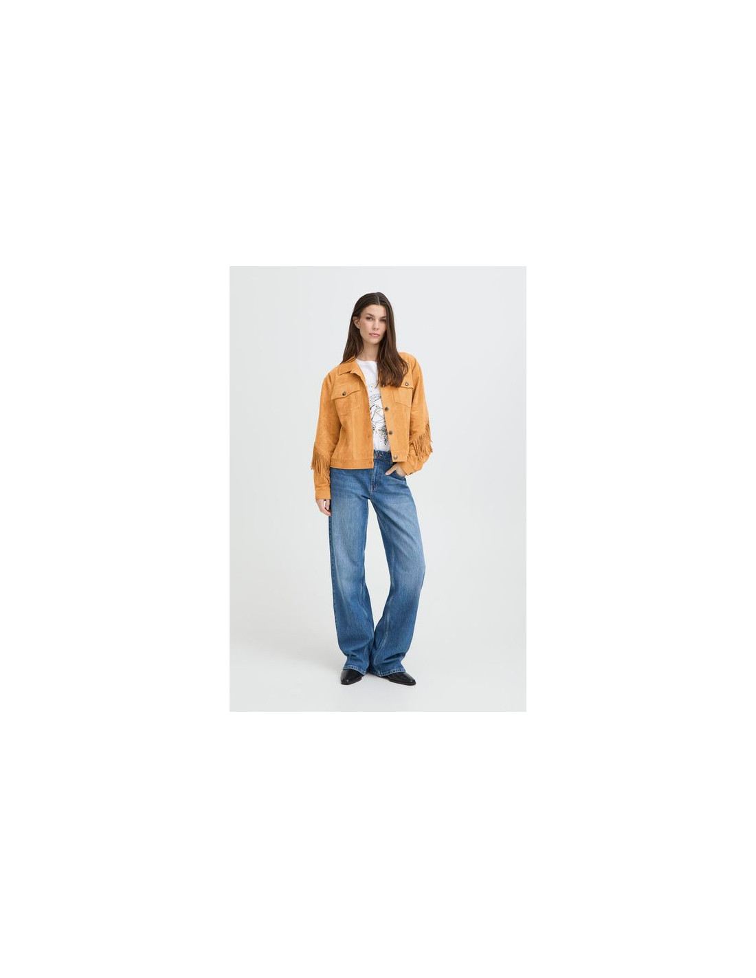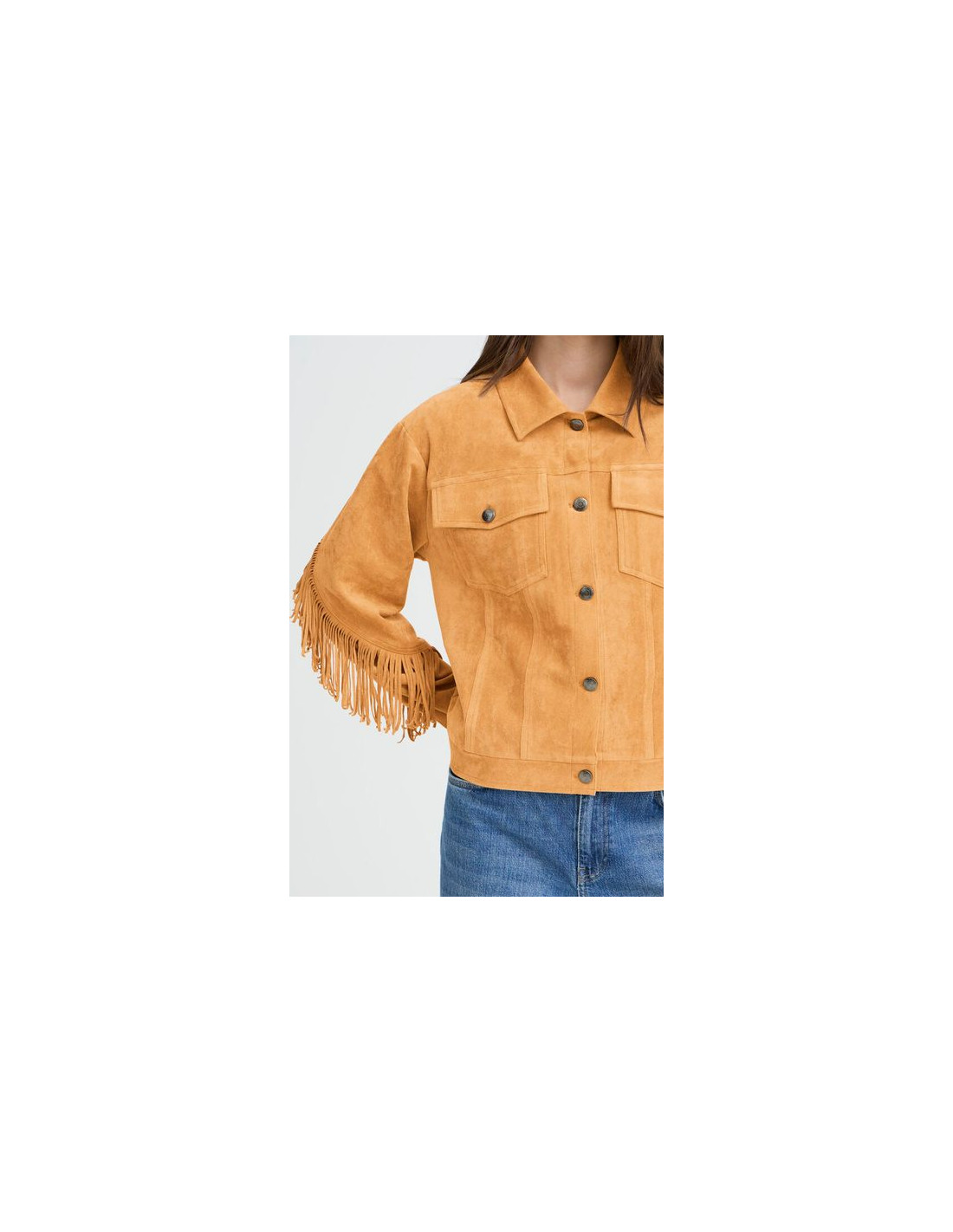 Cool jacka med fransar från Pulz i mocka look. Stängs med knappar och har en avslappnad passform.