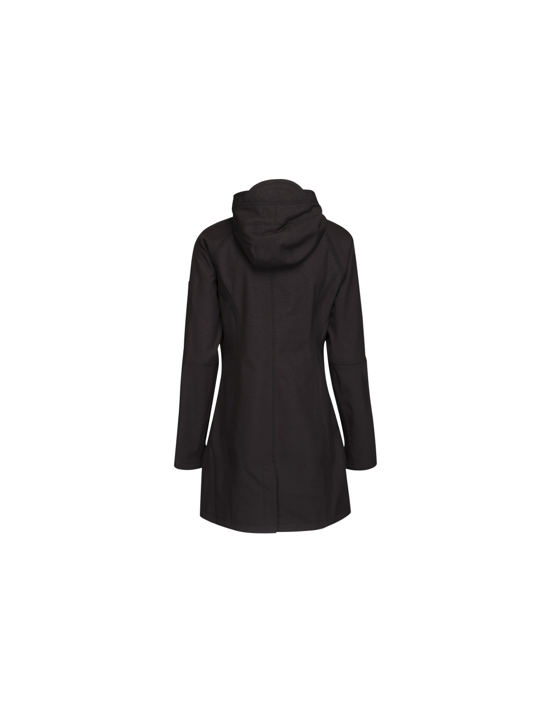 Snygg regnkappa/allväderskappa med tunt foder. Det är av softshellmaterial som både andas och är stretchigt. Två fickor fram och luva. Sömmar och dragkedjor är vattenskyddade. Dragkedjan kan dras upp nerifrån, för att underlätta vid cykling tex.