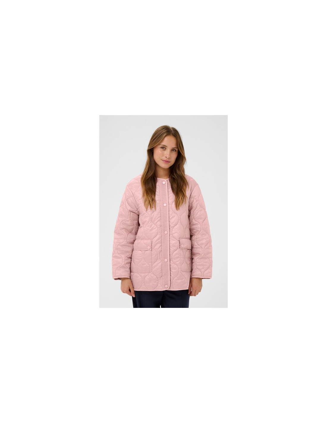 Quiltad vårjacka med rund hals, två framfickor och tryckknappar