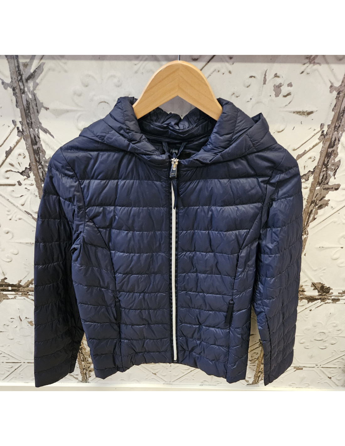 Lättviktsjacka med avtagbar luva, dragkedja och två fickor med dragkedja. Medföljer en påse för att kunna minimera den vid tex en resa.