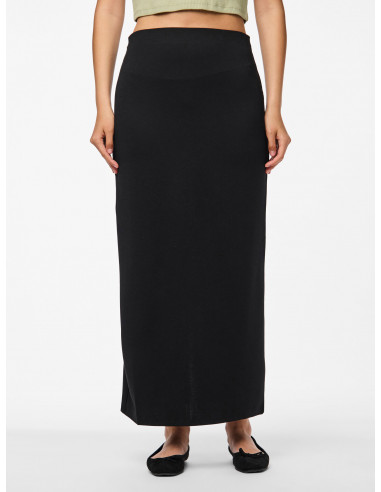 Lång tunn trikåkjol med sprund baktill och resår i midjan