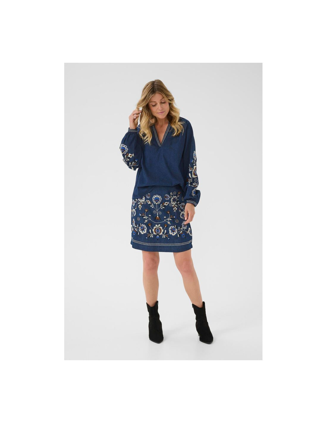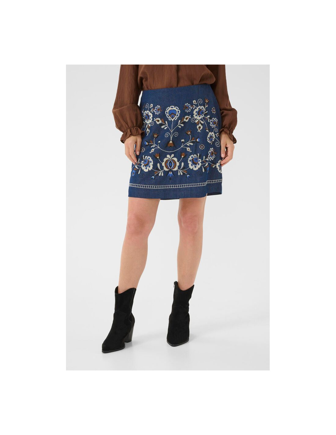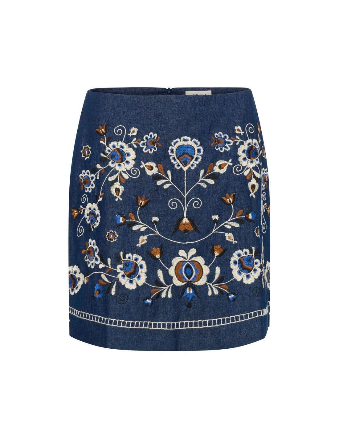 Kort kjol med fina broderier. Blus i samma serie finns. Något lien i storlek, många väljer att gå upp en storlek. 47 cm lång