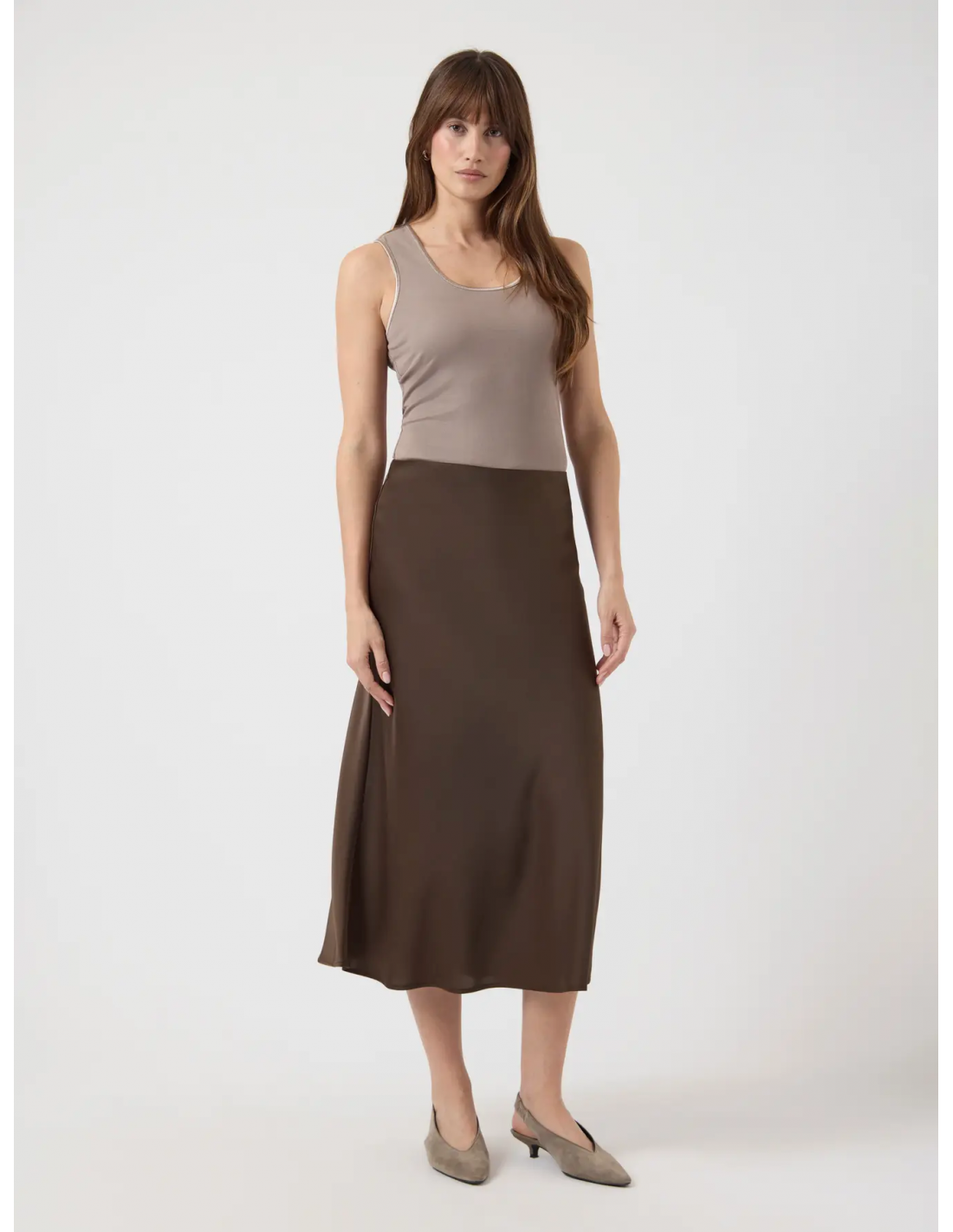 Midikjol med resår i midjan. Perfekt basplagg att ha i garderoben då den är lätt att både klä upp och ner.