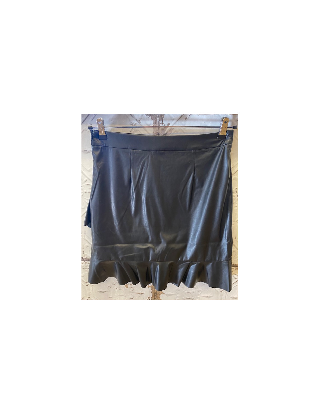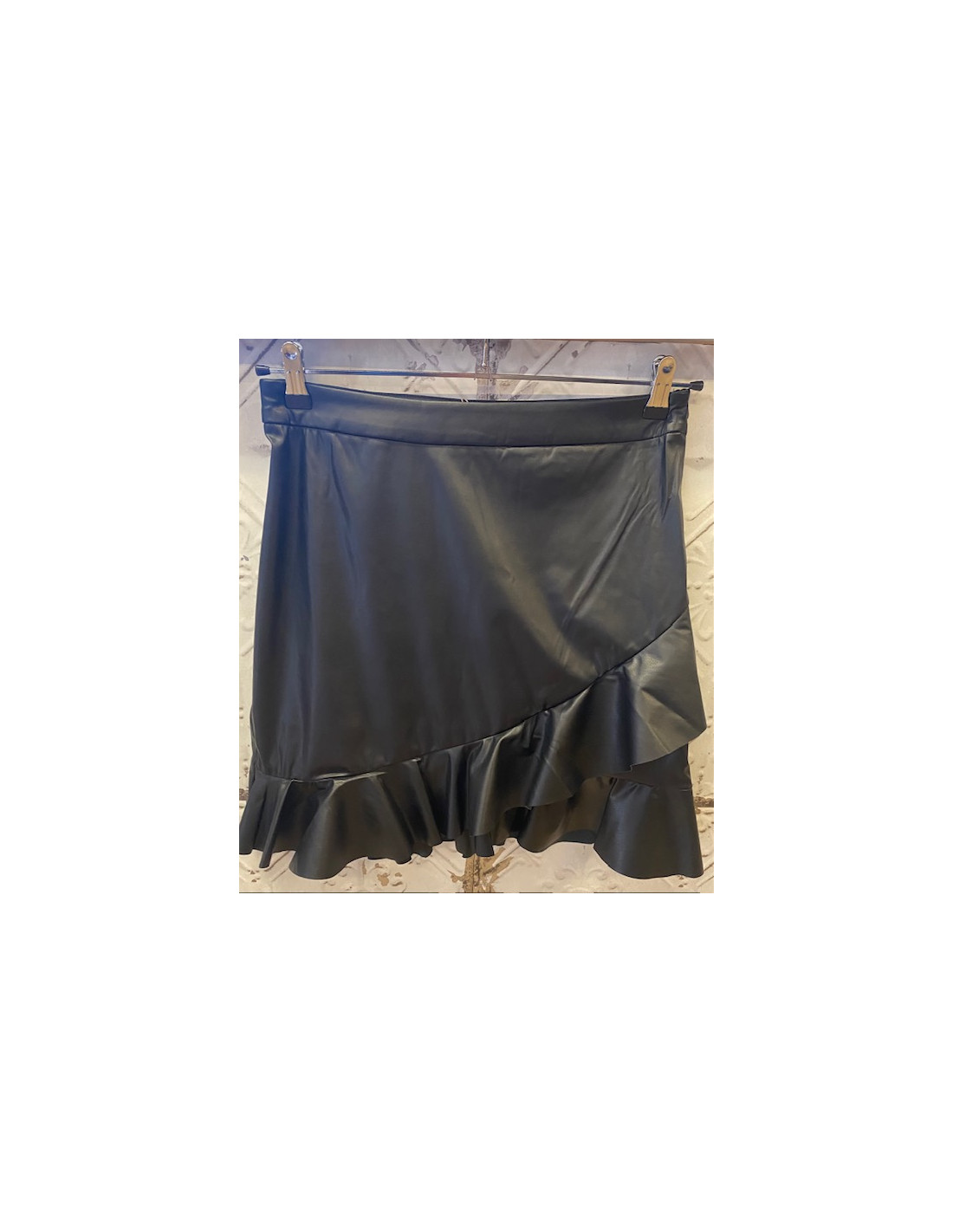Cool kjol i fuskskinn med volang i nederkant och framtill. Något strecthig.