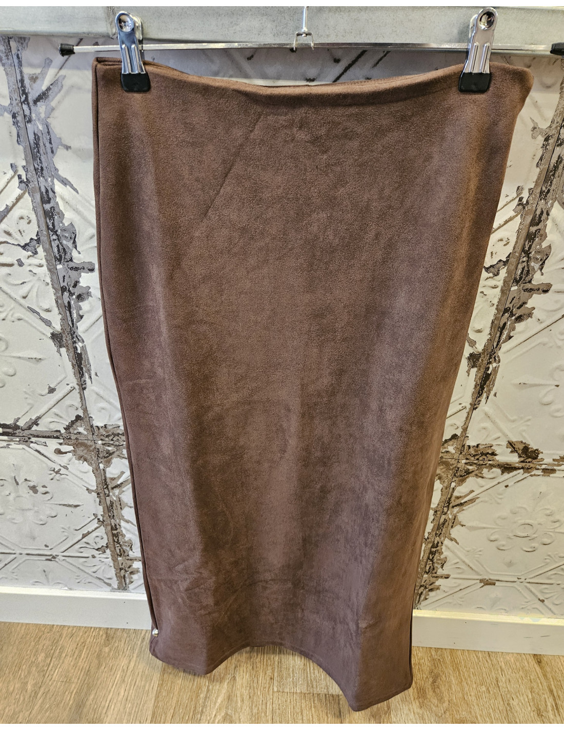 Ankelkjol i fuskmocka. Dold dragkedja och hyska i sidan. Slits baktill