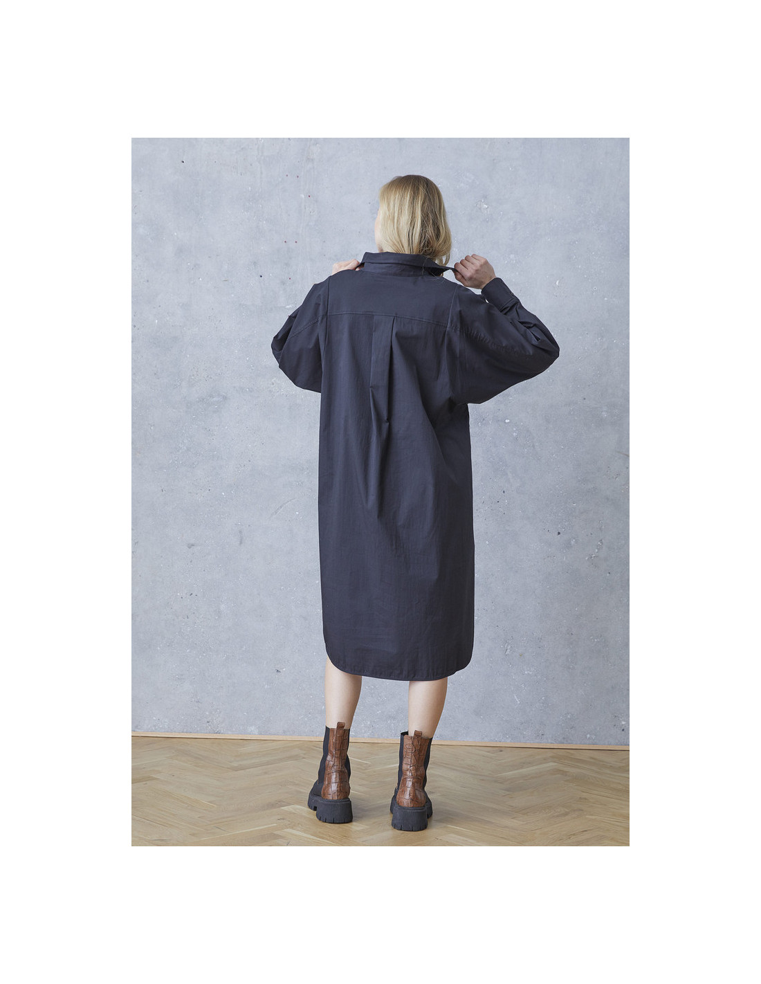 Cool oversize klänning i skön bomullspoplin. Rymlig i storlek så de flesta kunder går ner en storlek, för den är riktigt oversize.