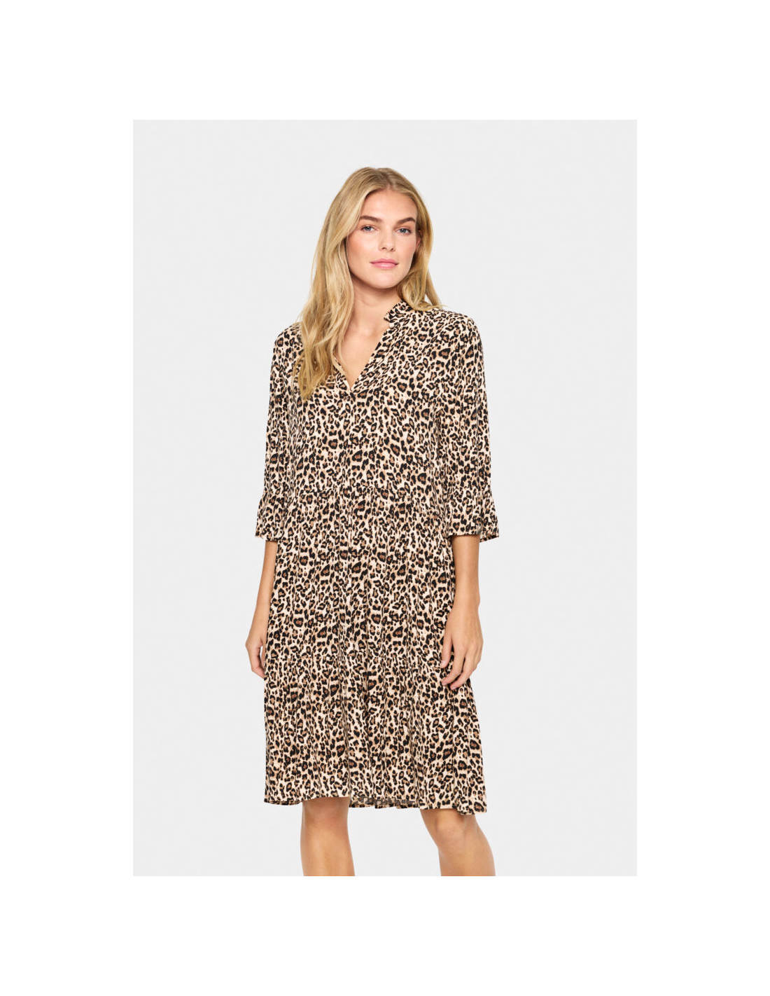 Klänning med 3/4 ärm och volang nertill. Knälång