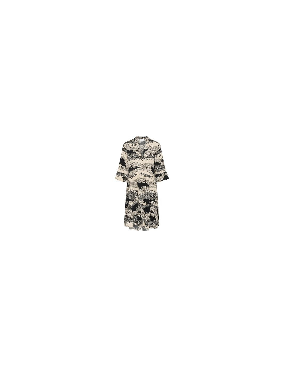 Klänning med 3/4 ärm och volang nertill. Knälång