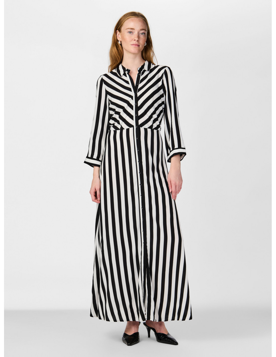 Lång skjortklänning med insvängd midja och 3/4 ärm. Liten i storlek