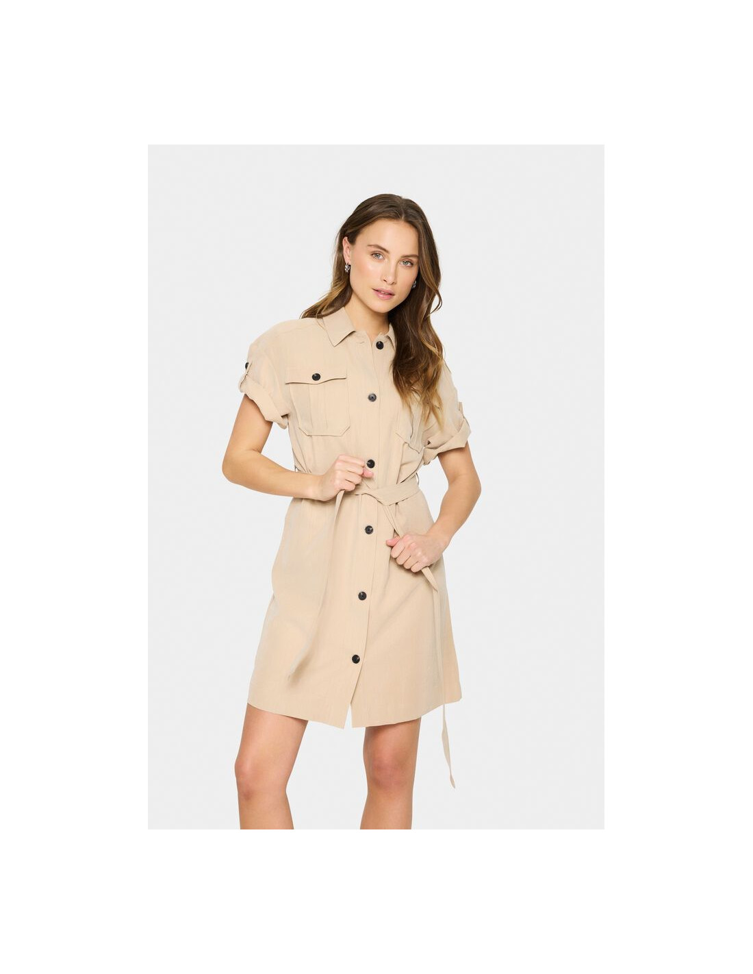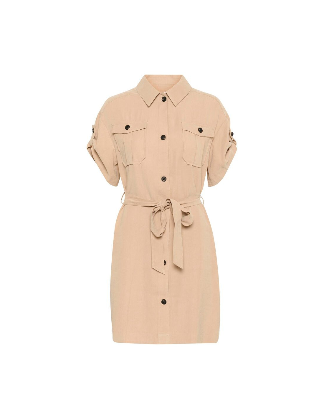 Knälång klänning i safarilook. Mjuk och skön i kreaftisk viscosetyg.