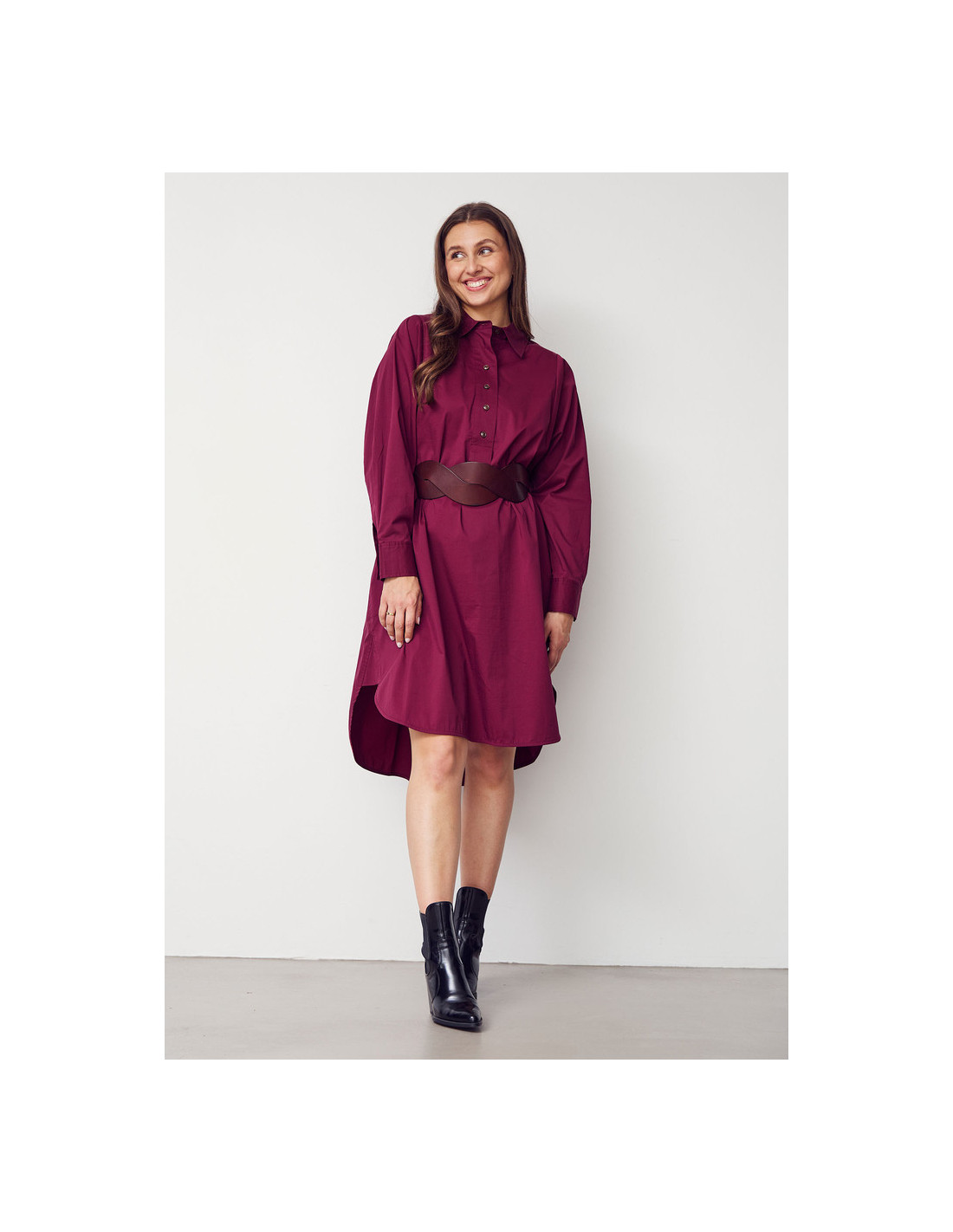 Skjortklänning i oversizemodell. A-formad och rundad i sidorna. De flesta går ner en storlek på denna eftersom den är riktigt rymlig. Längd i stl M = 104cm