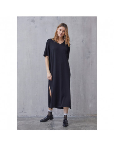 Härlig och rymlig trikåklääning med kort ärm och slitsar på sidorna.