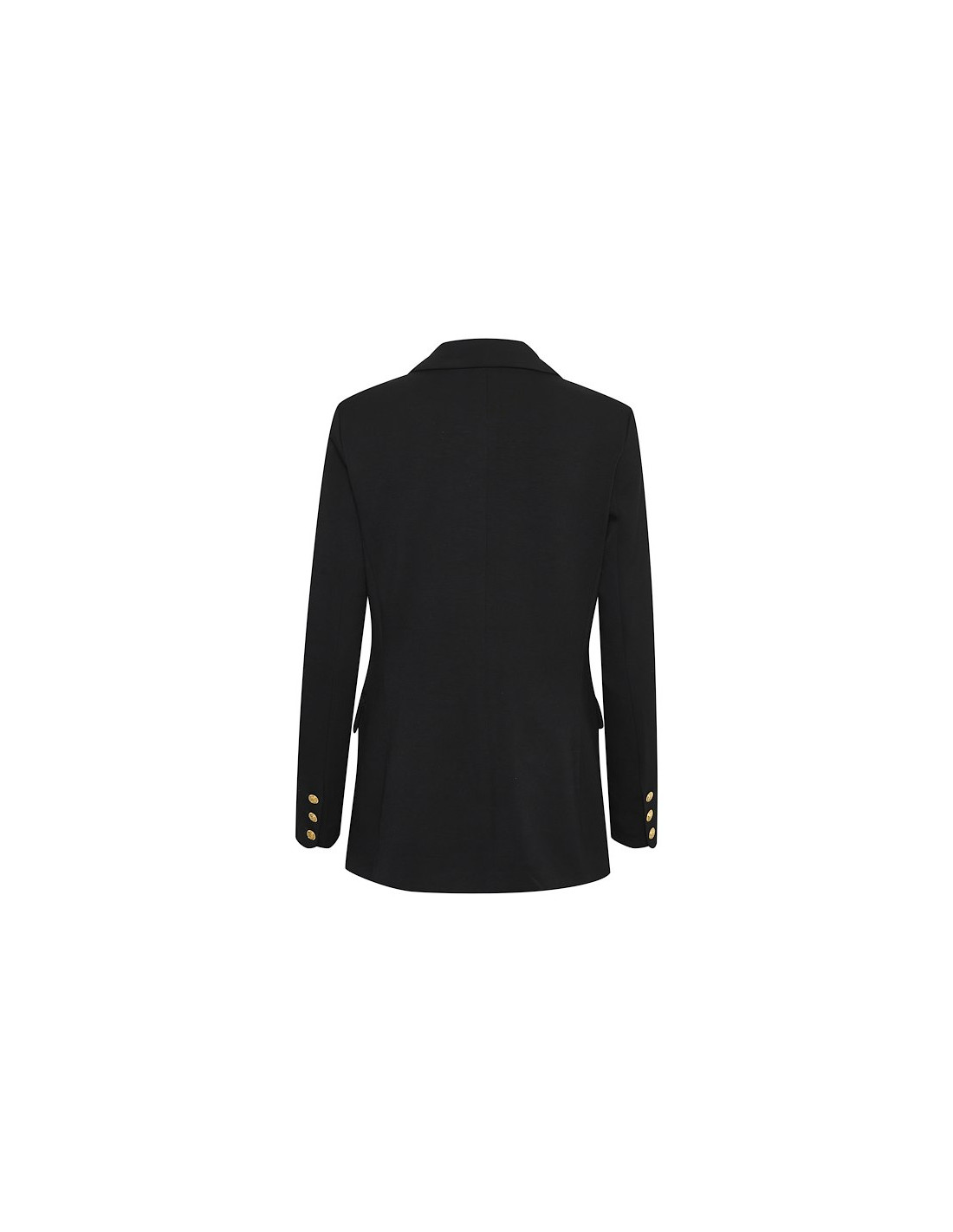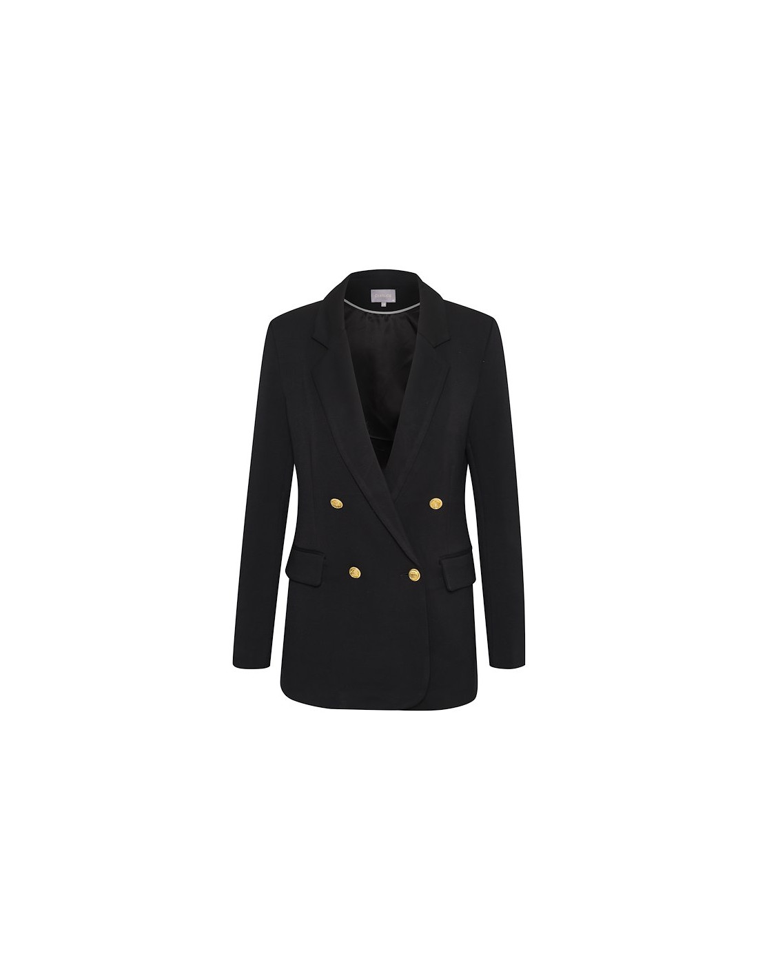 Klassisk dubbelknäppt kavaj som är figurnära. Materialet är en mjuk och stretchig viscose för bästa komfort. Fodrad. Fickor med ficklock. Guldfärgade metallknappar. Svart