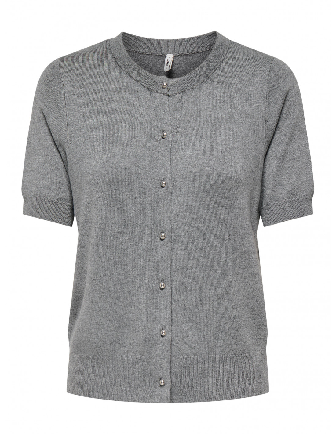 Rundhalsad kofta med kort ärm och fina pärlknappar