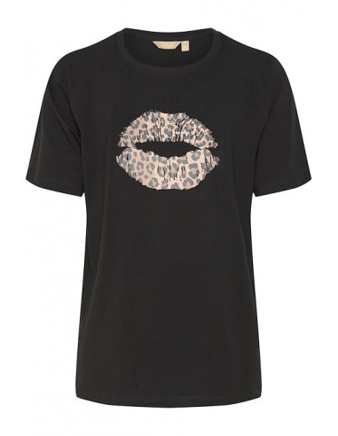 Svart T-shirt med pussmun i leopard. Relaxad passform