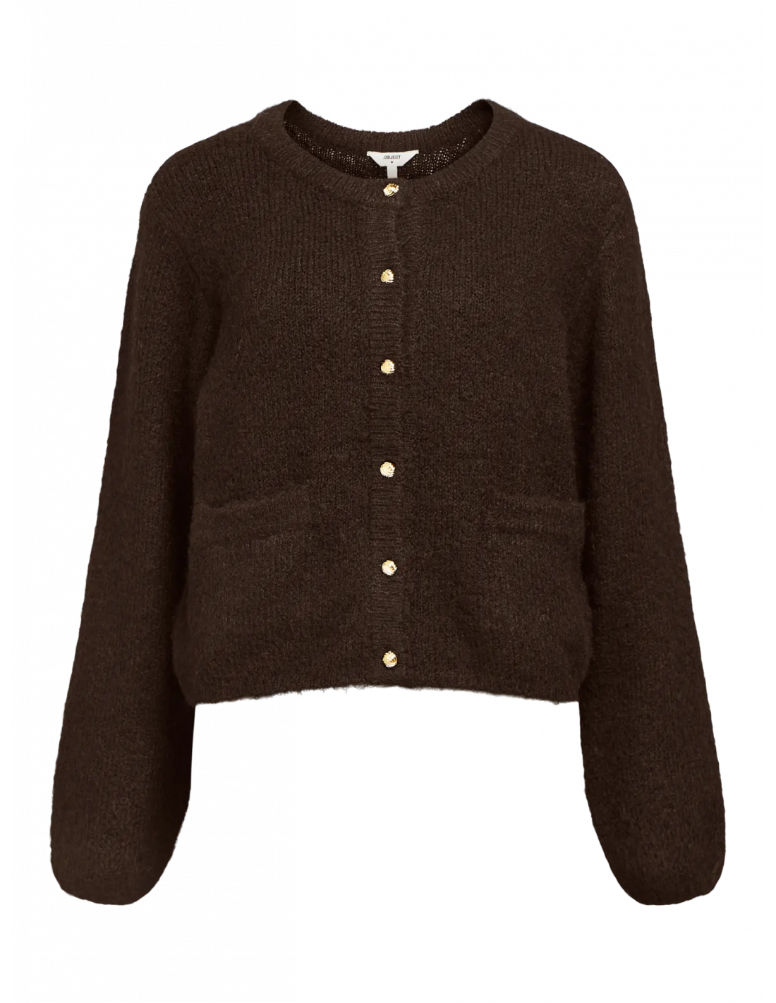 Gosig kofta i lite oversize modell. Fickor fram och knappar i guld.