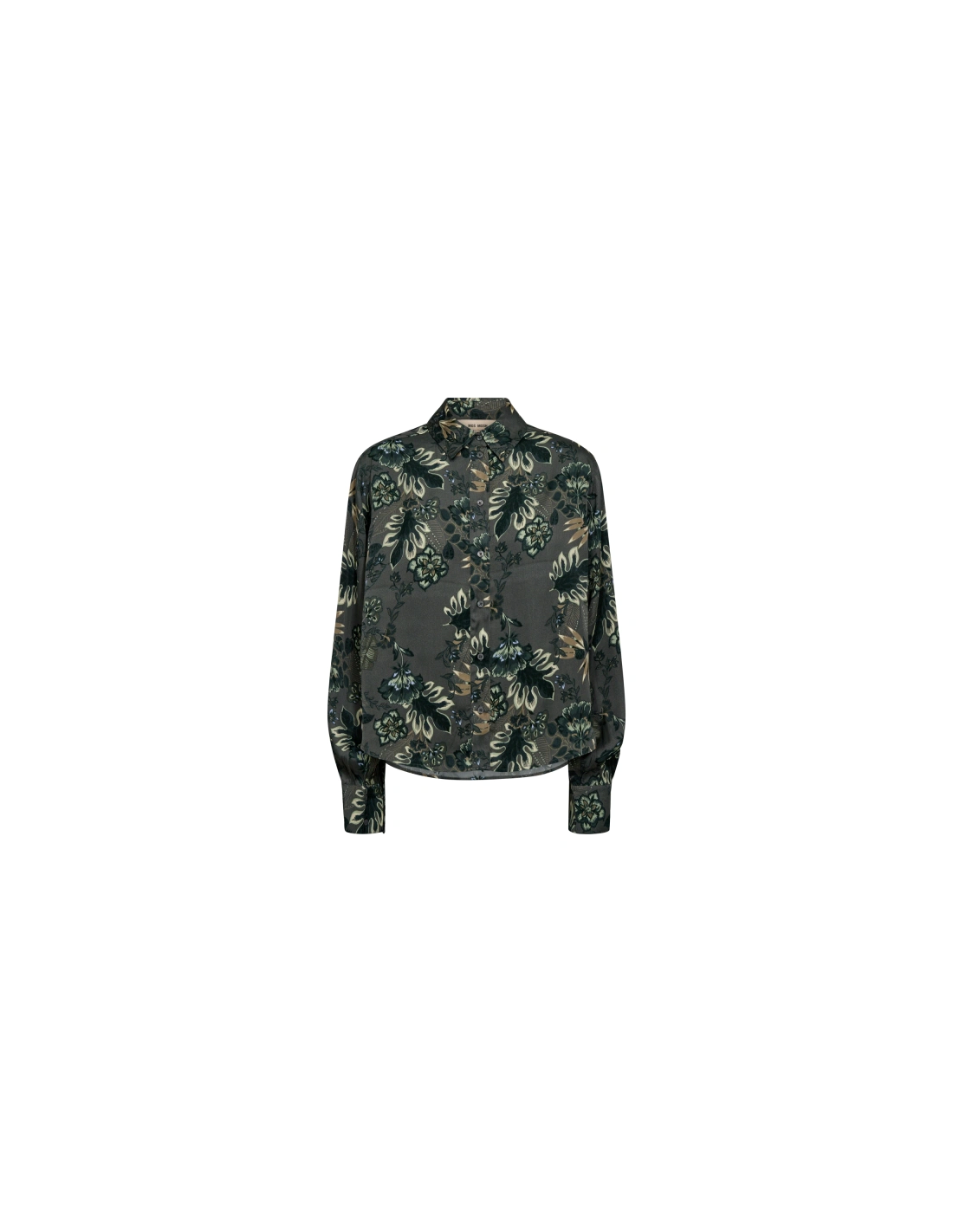 Fin blus med blommigt mönster som är lätt att både klä ner och upp beroende på vilken typ av look man vill ha. Blusen, som är avslappnad i passformen, har krage och stängs med knappar framtill och i ärmslut.