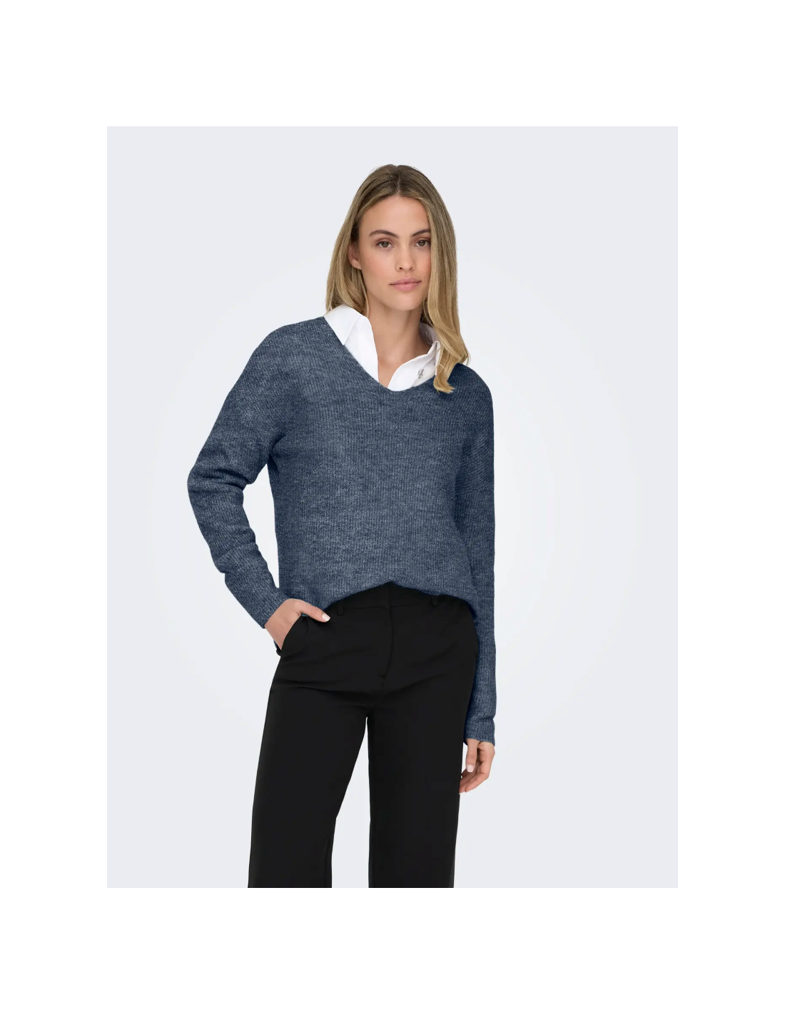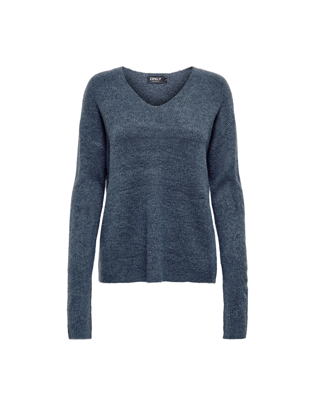 Tunnstickad tröja med lång ärm och V-ringad hals. Normal passform