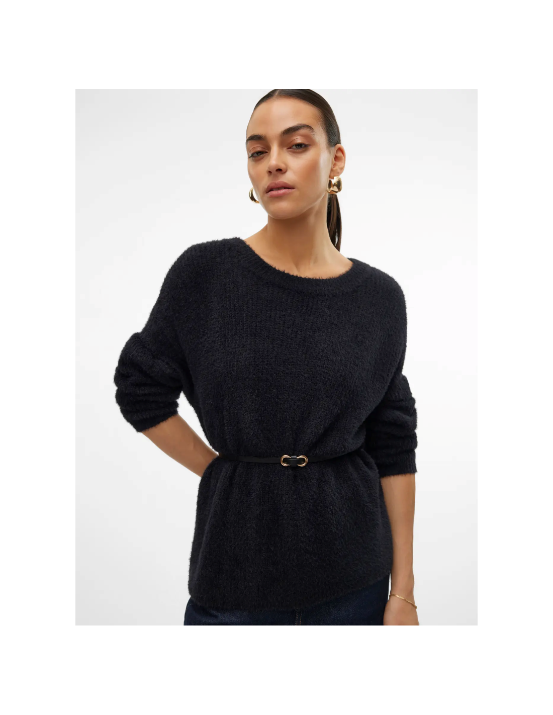 Mjuk och fluffig stickad tröja med rund hals och lång ärm