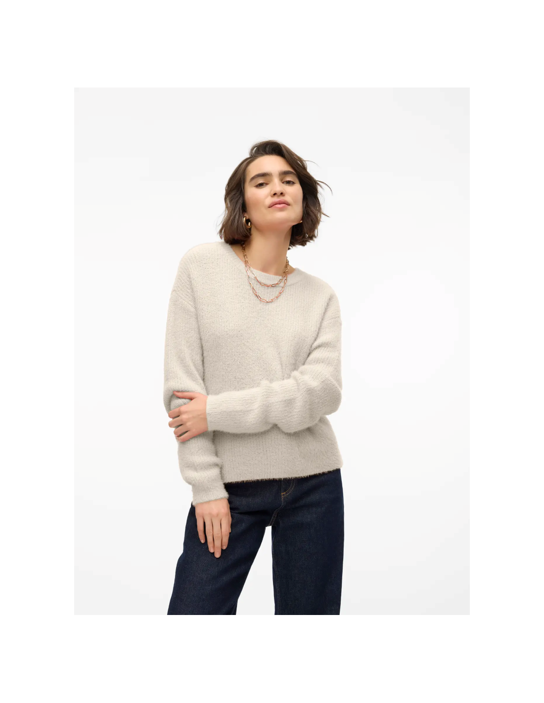 Mjuk och fluffig stickad tröja med rund hals och lång ärm