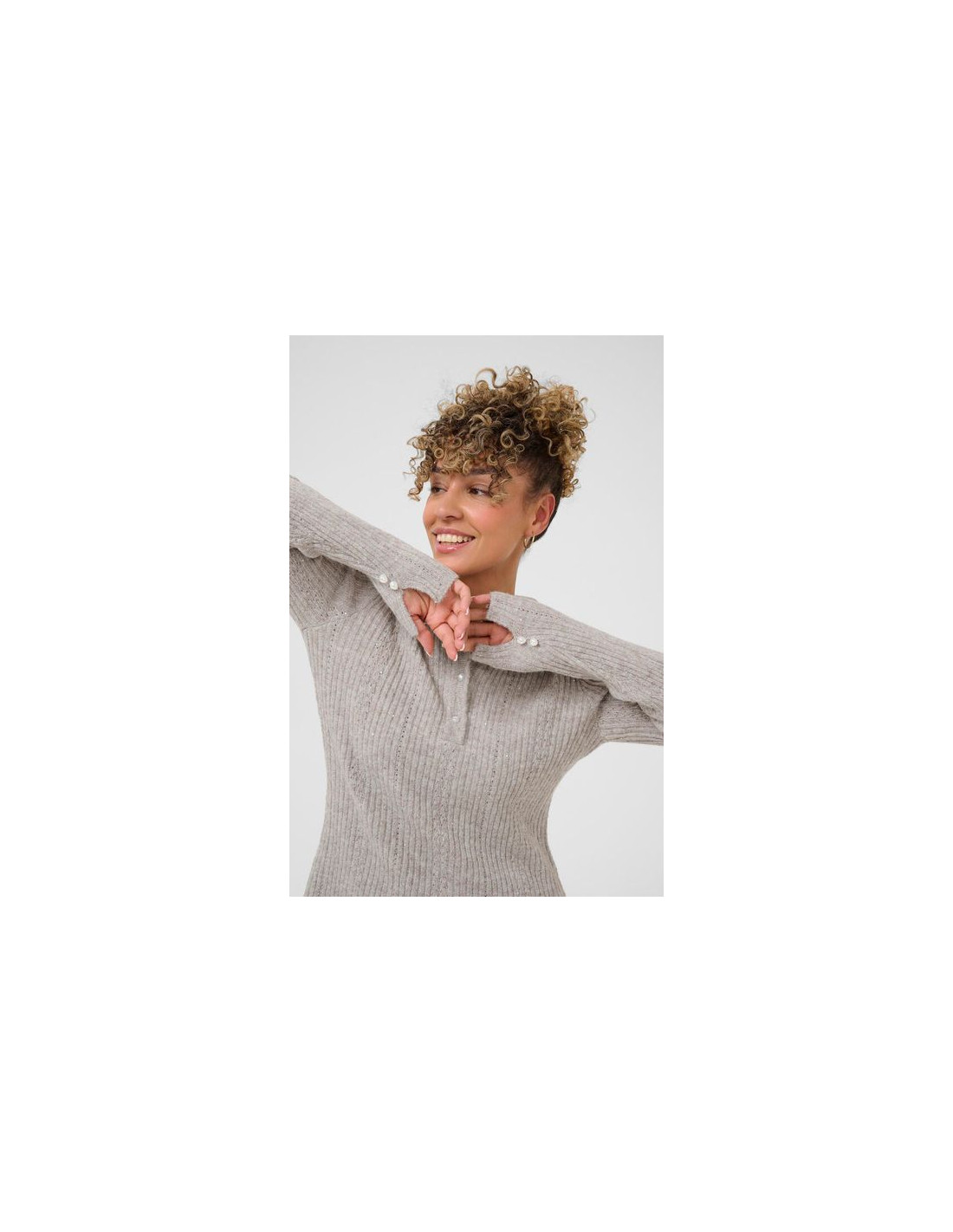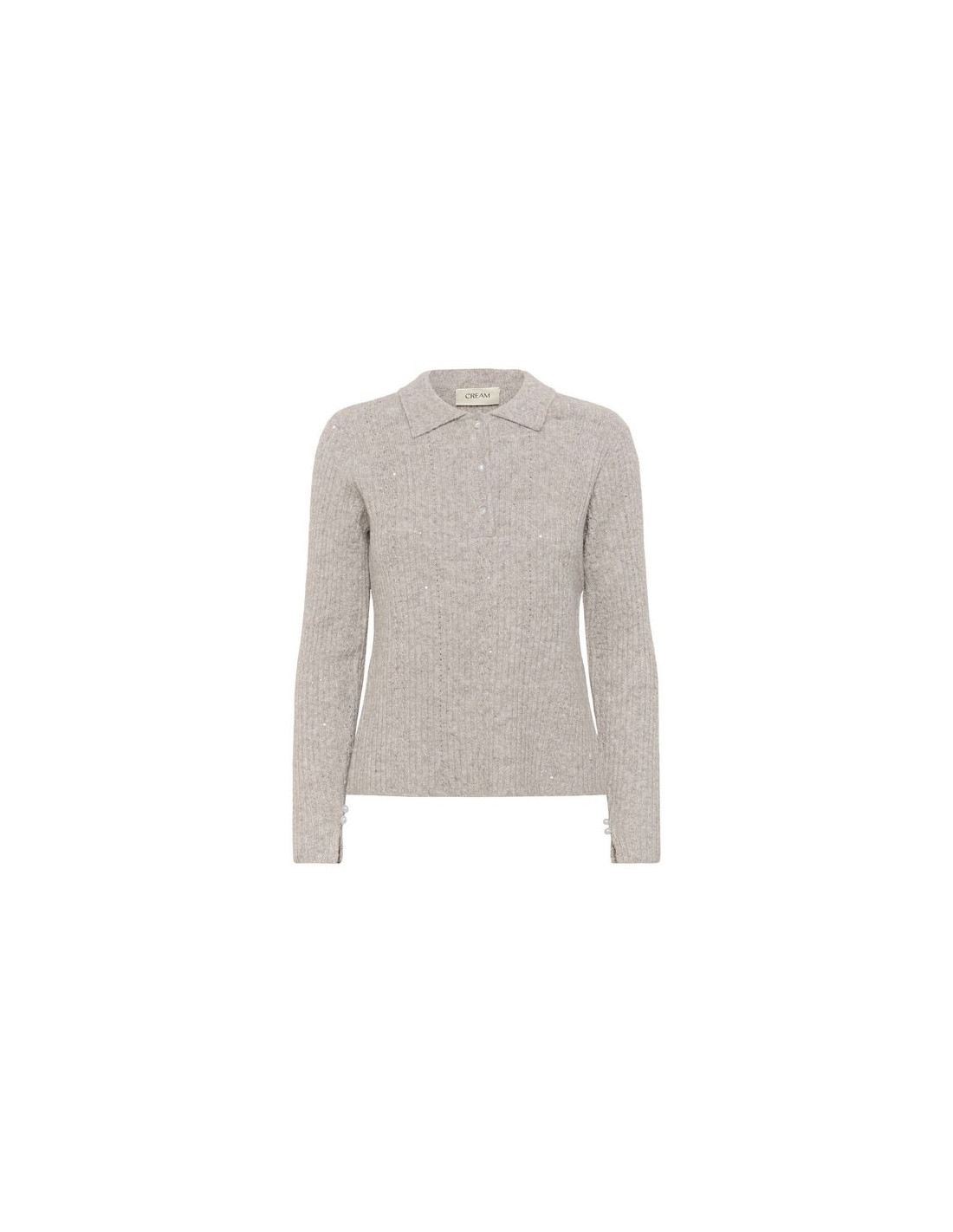 Stickad festligare tröja med krage, pärlknappar och glitter. Ärmen har ett fint avslut med en liten sprund och pärlor