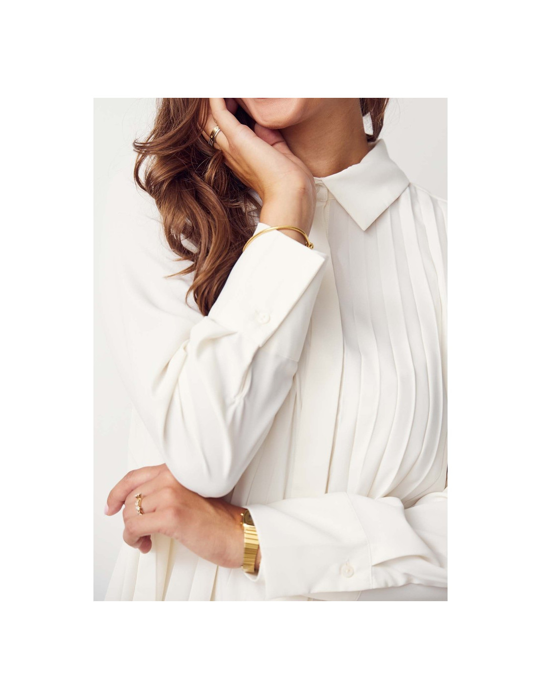 Fin plisserad skjorta med klassisk krage från Isay. Gömda knappar framtill.
