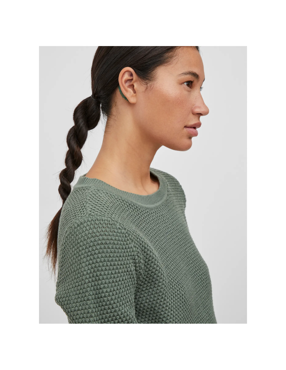 Härlig bomullströja i våfflat mönster med rund hals och lång ärm. Liten i storlek