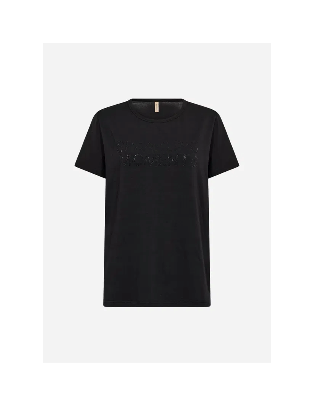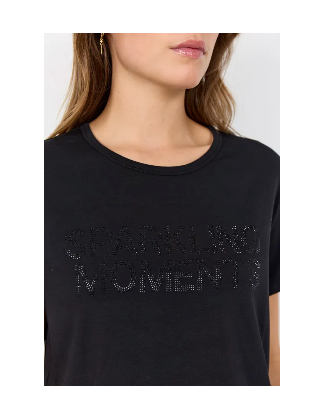 Rundhalsad T-shirt med kort ärm och glittertryck framtill