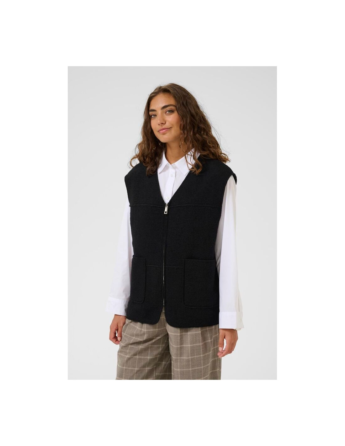 Snygg ullväst med kontastsömmar, dragkedja och två framfickor