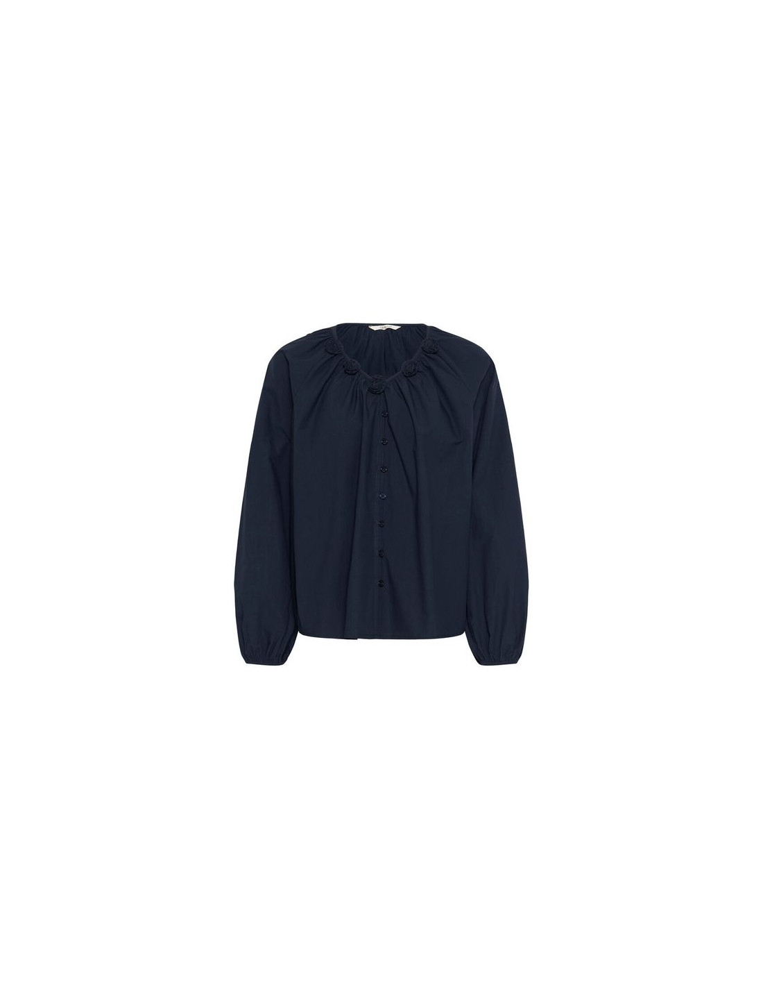 Söt blus från Cream i bomullspoplin. Rund hals med söta rosor samt knappar framtill. Lång ärm med smal resår vid ärmslut