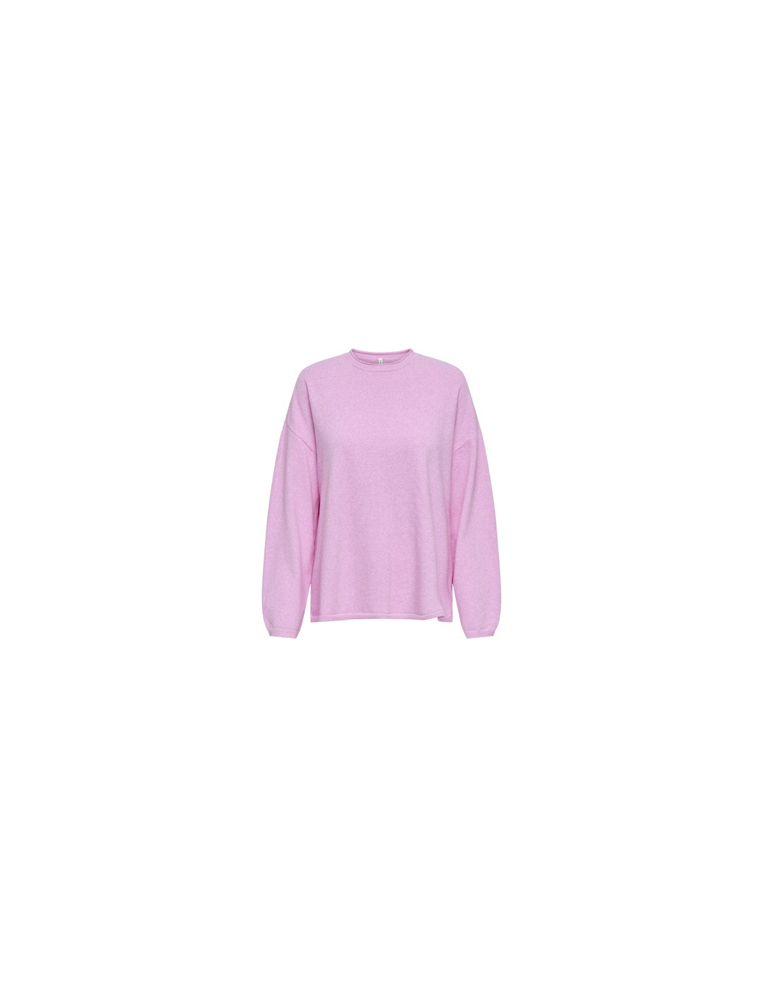 Stickad tröja i supermjuk kvalité med rå kant i halsen och lång ärm. Axelsömmen är något nerhasad. Stor i storlek