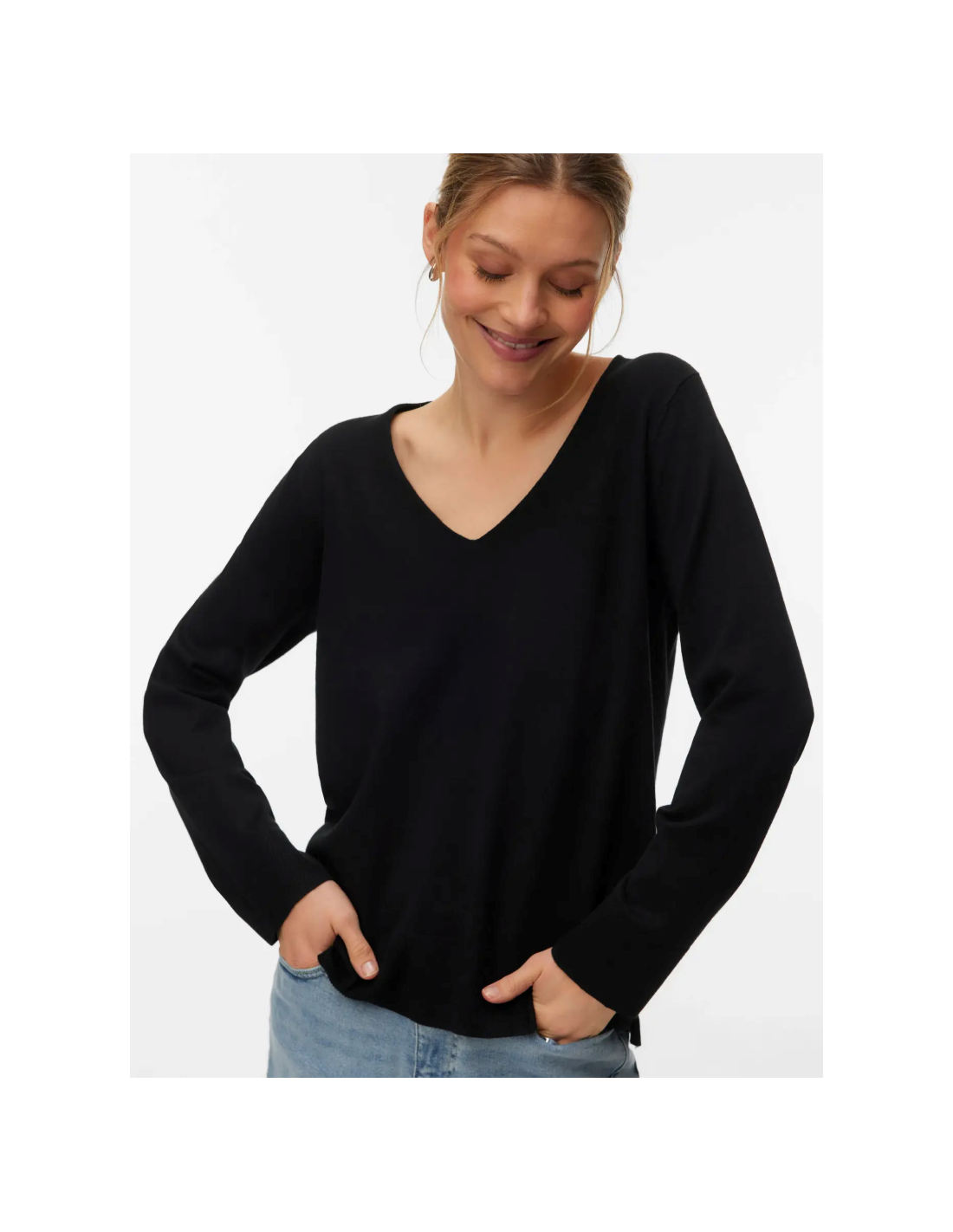 V-ringad tunnstickad tröja med lång ärm. Oversizemodell