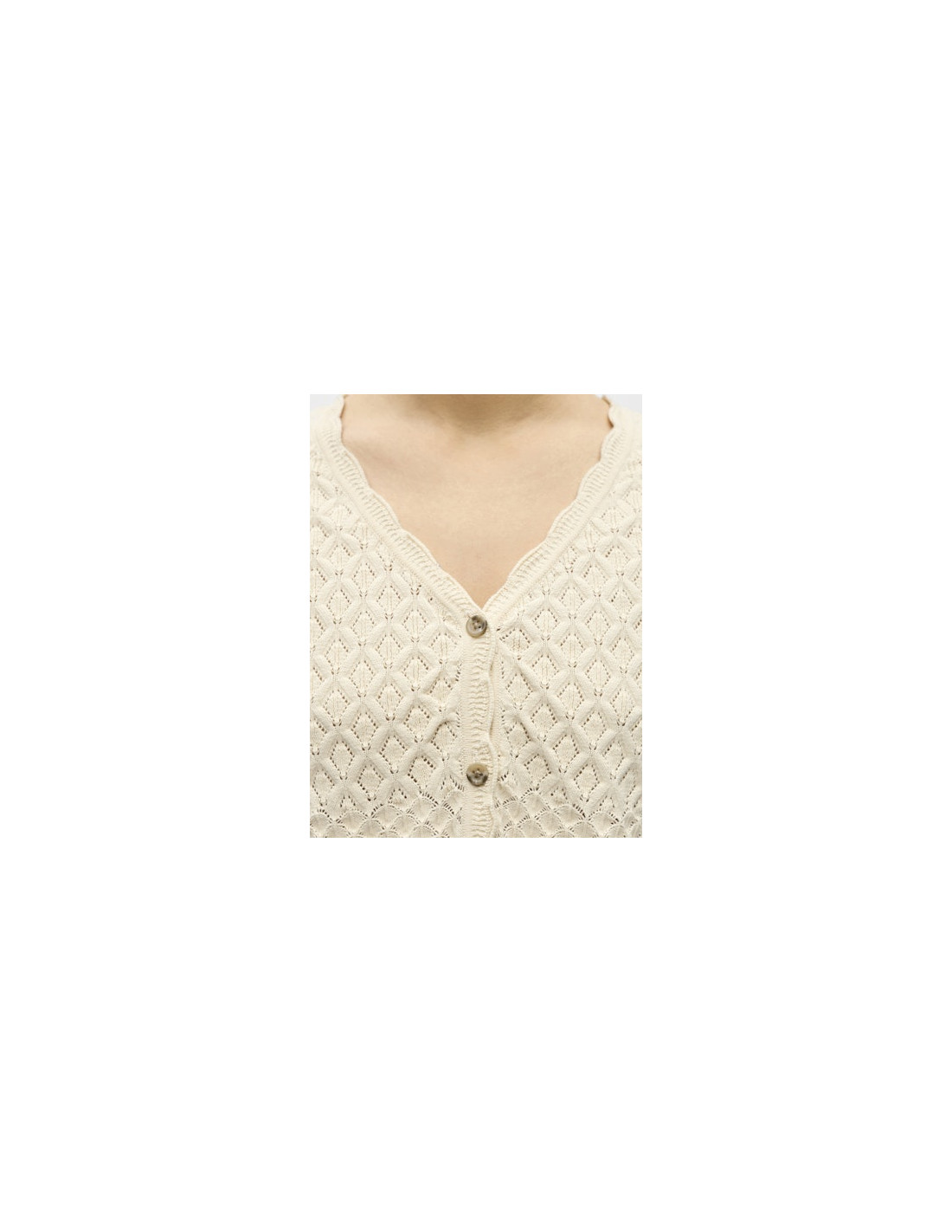 V-ringad kofta i ett fint mönster. Lång ärm och knappar.