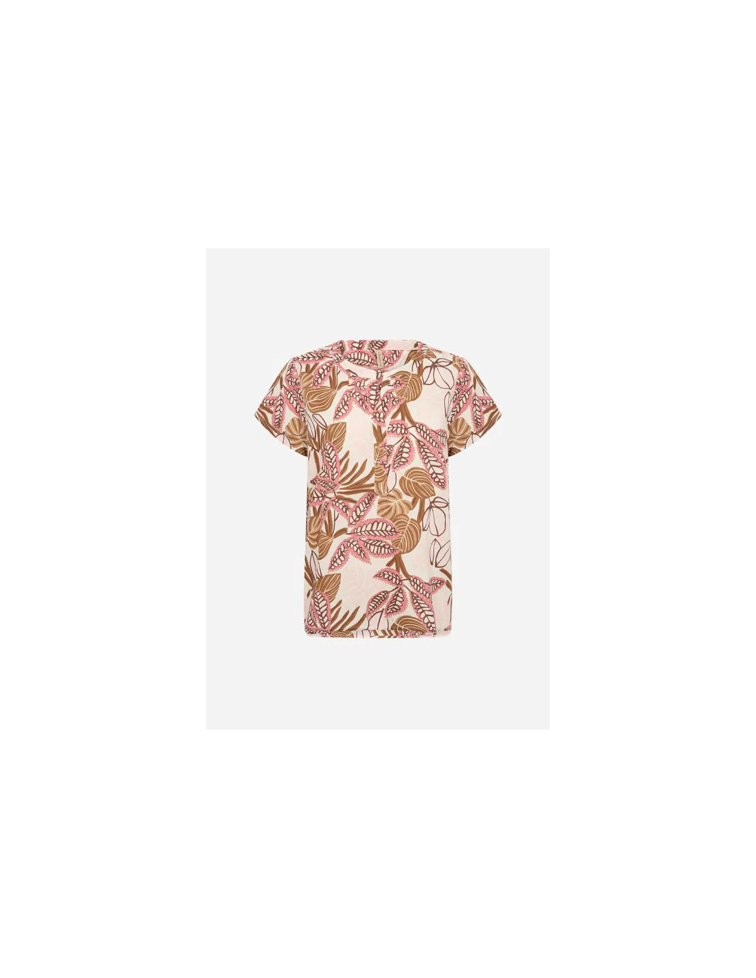 Mönstrad topp med kort ärm Något rymlig i storlek