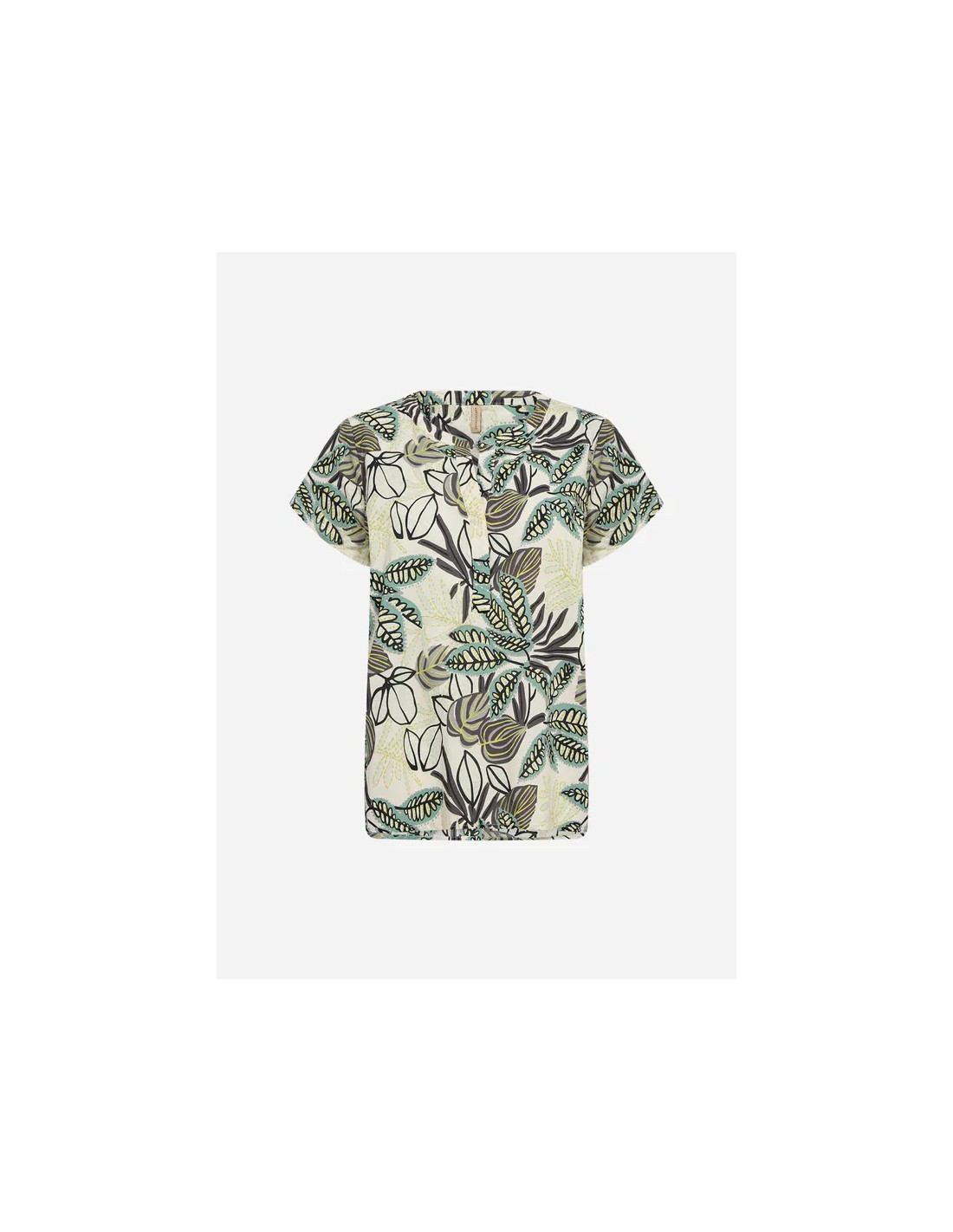 Mönstrad topp med kort ärm Något rymlig i storlek
